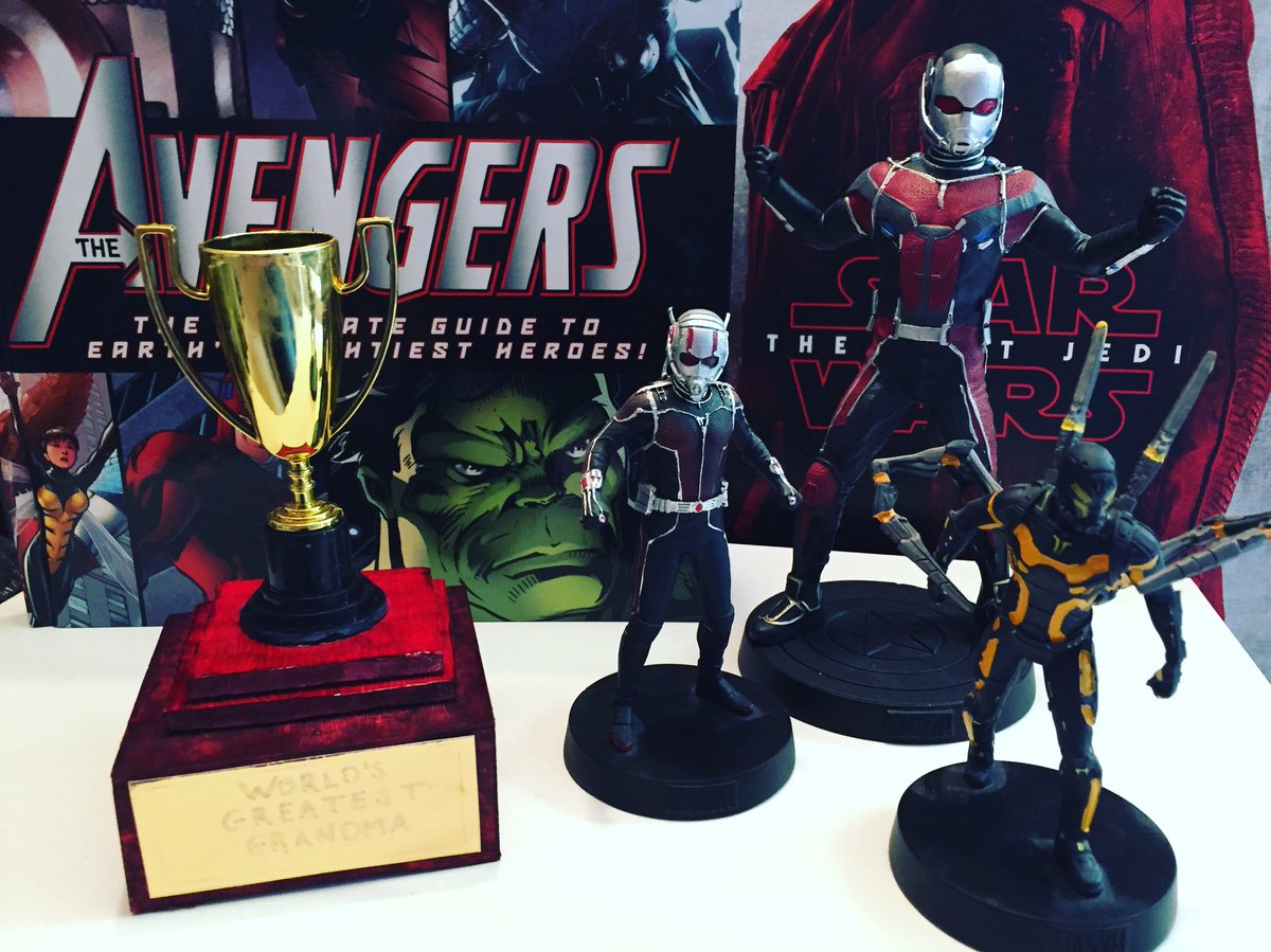 Ant-Man by his daughter Cassie this trophy reads Worlds Greatest Grandma.